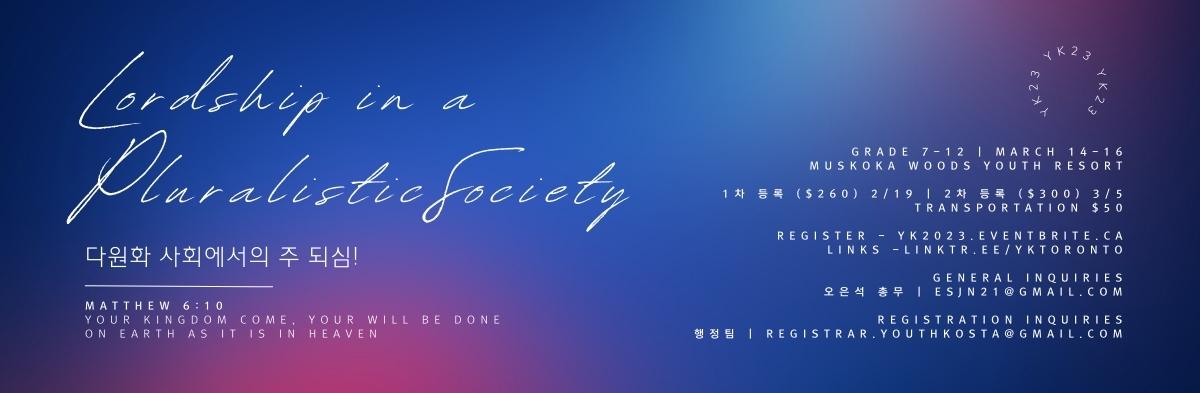 이번 유스코스타 참가등록은 2월19일까지 1차 등록에 이어 20일부터 3월5일 주일까지 2차 등록($300)을 받는다. 등록은 개인과 단체 모두 온라인(yk2023.eventbrite.ca)으로만 신청을 받는다. 무스코카 집회장소까지 버스를 이용할 경우에는 $50(편도 $30)이 추가된다.