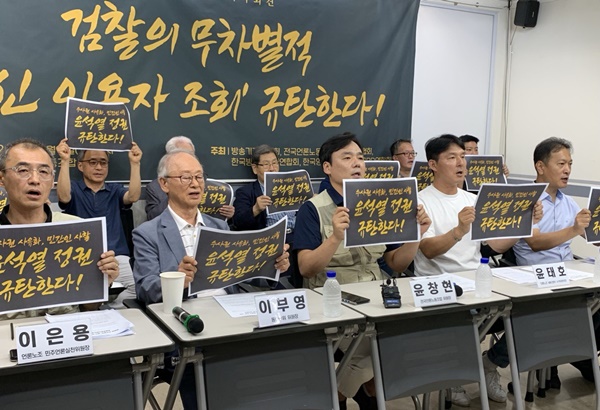 윤창현 언론노조 위원장은 ‘적법한 수사’라는 검찰 주장을 반박하며 “수천 명의 관련자 정보를 무더기로 입수해 저인망식 수사로 윤석열 대통령 명예를 지키기 위한 수사를 남발하는 것이 과연 공정과 상식에 부합하는 지 되묻지 않을 수 없다”면서 “내 정보가 수사 당국의 손에 어떻게 활용될지 모른다는 불안감이 시민들의 일상을 지배하고, 언론인들은 취재원의 정보가 언제라도 노출되지 않을까 두려움에 떨 수밖에 없는 공포사회가 되어가고 있다”고 했다.