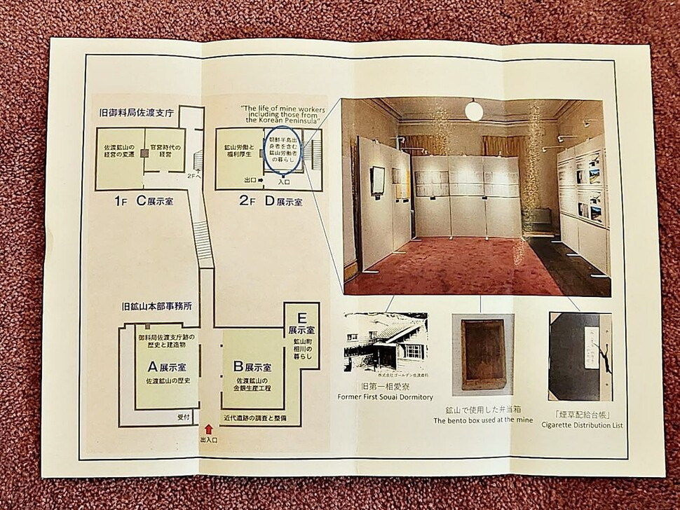 먼저 조선인 노동자들의 이야기가 담긴 전시물은 사도광산 인근 ‘아이카와 향토박물관’에 설치됐다. 일본 정부는 당장 28일부터 전시물을 일반에 공개할 계획이다. 전시물에는 “전시에 국가총동원법, 국민징용령 및 기타 관련 조치들은 한반도에서 시행됐다. 초기에는 조선총독부의 관여하에 ‘모집’, ‘관 알선’이 순차적으로 시행됐고, 1944년 9월부터는 ‘징용’이 시행돼 노동자들에게 의무적으로 작업이 부여되고 위반자는 수감되거나 벌금을 부과받았다”고 명시했다. 또한 “한국인 노동자들이 바위 뚫기, 버팀목 설치, 운반과 같이 갱내 위험한 작업을 더 많이 했다는 기록이 있으며, 노동 조건에 대한 분쟁과 식량부족, 사망사고에 대한 기록도 있다. 한국인 노동자의 한 달 평균 노동일이 28일이었다는 기록과, 한국인 노동자들의 탈출과 수감 기록도 있다”고 적었다.