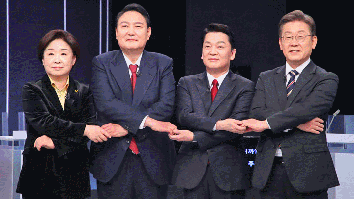 중앙선거관리위원회 주관 제20대 대통령선거 후보자 3차 사회분야 방송토론회에 참석한 후보들.