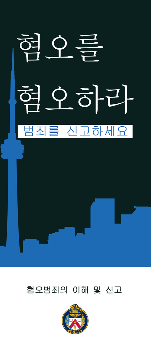 혐오범죄 예방과 근절을 위해 토론토 경찰 등 사법당국과 긴밀히 공조하고 있는 토론토 한국총영사관이 경찰 홍보자료인 혐오범죄 관련 팜플릿을 공동으로 번역한 한글판을 토론토 경찰청 홈페이지와 총영사관 홈페이지에 동시 게재했다.