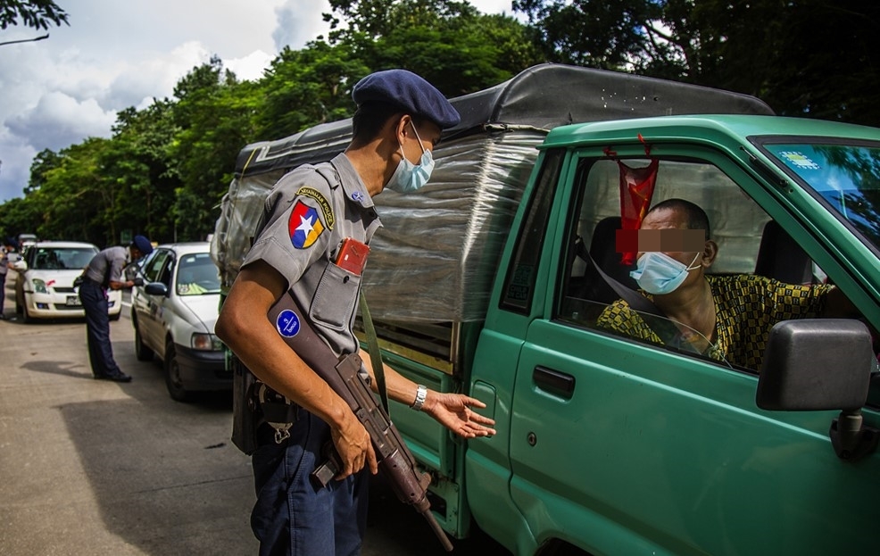 *검문 검색 중인 미얀마 군경 [미얀마 타임스 캡처]