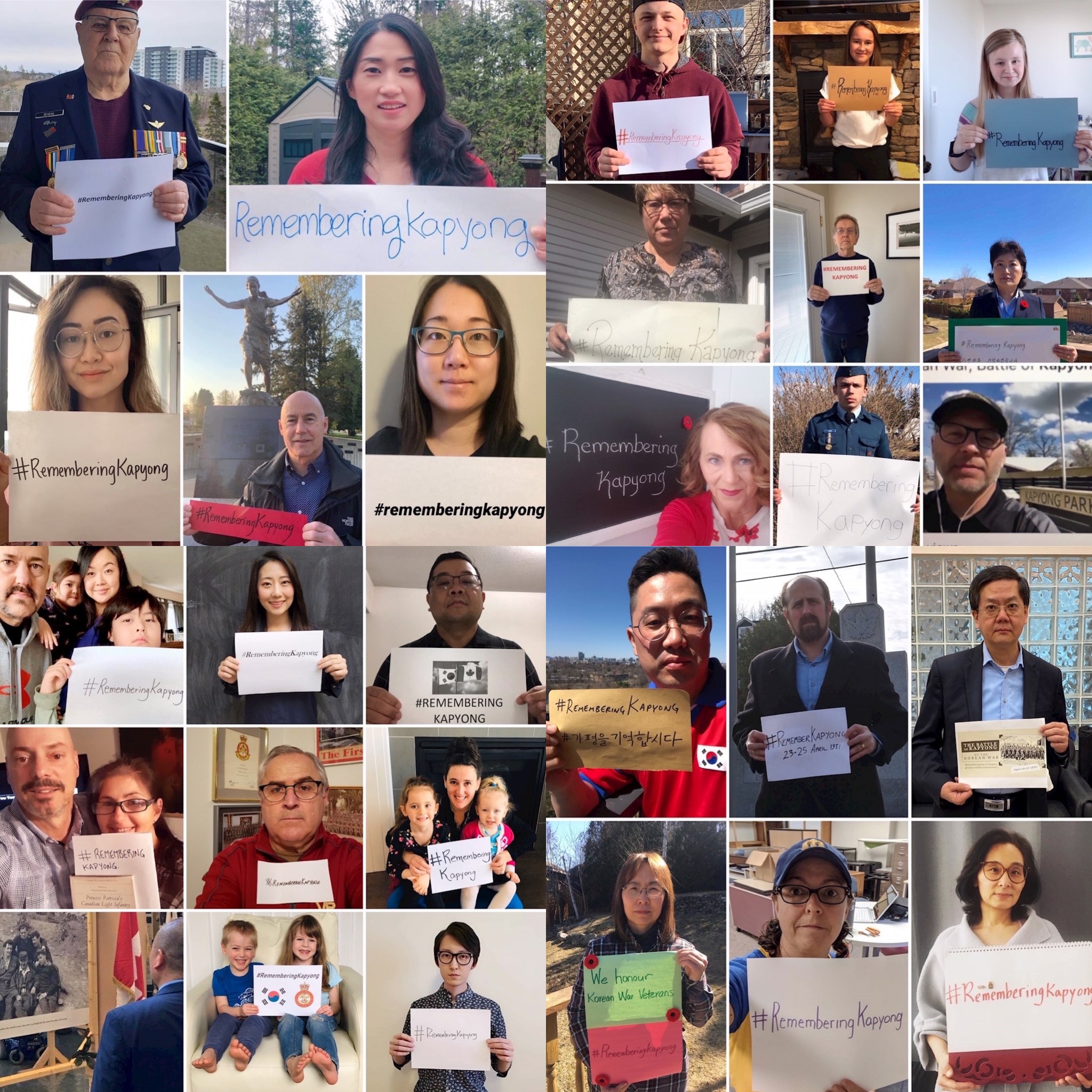 23일(금) 열릴 ‘기억 캠페인(Remembering Kapyong)’은 SNS을 통해 누구나 동참할 수 있는 이벤트로, 종이, 포스터 또는 배너 등에 #RememberingKapyong #Kapyong70 #Gapyeong70 #KoreanWarForgottenNoMore 등의 해시태그 중 하나를 기재 혹은 인쇄하여 들고 찍은 사진을 SNS에 올리면 된다. ( 아래사진 지난해 화상 캠페인 모습 )