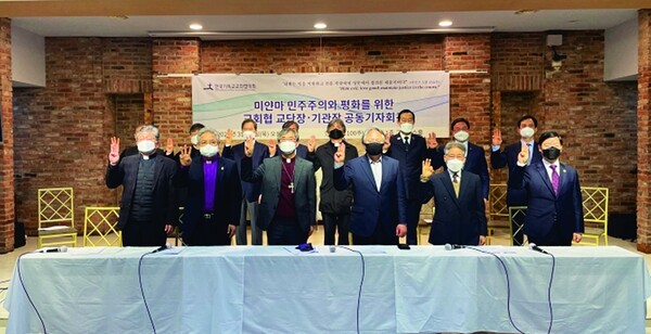기독교 연합기관인 한국기독교교회협의회(NCCK)회원 교단장과 기관장들은 11일 “미얀마의 민주주의가 실현되고 국민 자유와 인권의 가치가 존중되는 그 날까지 한국교회, 세계종교 시민사회와 함께 기도하고 연대할 것을 선언한다”고 밝혔다.