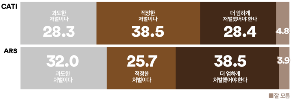 ‘과도한 처벌’은 28.3%, ARS ‘적정+엄벌’ 64.2%, ‘과도’ 32%