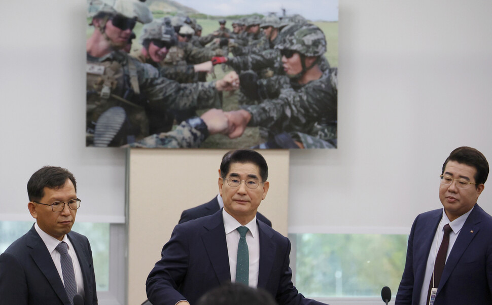 그랬던 한 대표가 이재명 때리기에 나서자 추경호 원내대표, 김재원·김민전 최고위원까지 이 대표의 계엄 발언을 줄줄이 비판하고 나섰다. 국민의힘 지도부의 이런 움직임은 이 대표 발언을 신호탄으로 민주당이 ‘윤석열 탄핵소추-군부 친위 계엄 의혹’을 공식화하려 한다는 의심 때문으로 보인다. 이날 오전 국회 국방위원회의 김용현 국방부 장관 후보자 인사청문회에서는 민주당 의원을 중심으로 김 후보자가 군내 ‘충암파’ 라인을 통해 계엄을 준비하고 있는 것 아니냐는 질의가 이어졌다.
