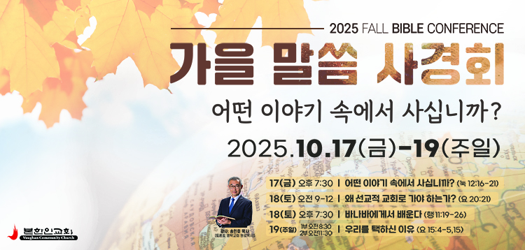 본 한인교회 (담임 고영민 목사: 200 Racco Parkway, Thornhill L4J 8X9)는 오는 10월17일(금)부터 19일 주일까지 송민호 목사(토론토 영락교회 원로:사진)를 강사로 초청해 2025 가을 말씀사경회(Fall Bible Conference)를 개최한다.