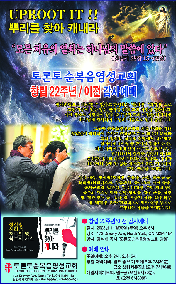 | 순복음 영성교회, 11월30일 창립 22주년 / 성전 이전 감사예배 (0) | 2025.11.10 |
