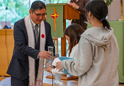 예배는 교회와 지역 공동체의 연합을 상징하는 상징물 전달의 시간이 이어져 학생부 청소년들이 신태성 목사에게 성경, 물, 빵, 포도주, 목자의 도구 등을 전달했다. 상징물은 말씀과 섬김, 화해와 돌봄의 사명을 함께 나누겠다는 공동의 약속을 표현한다.