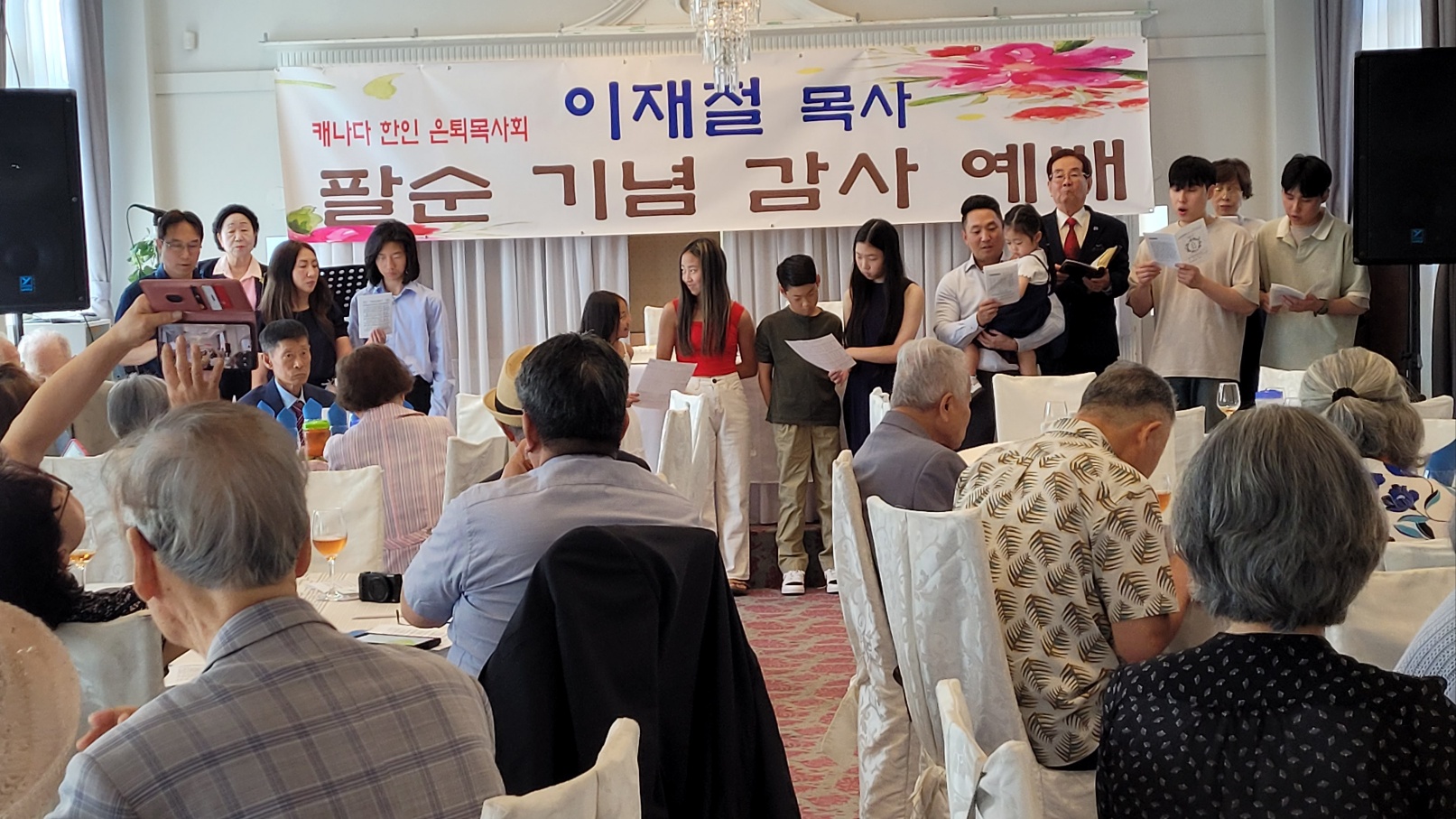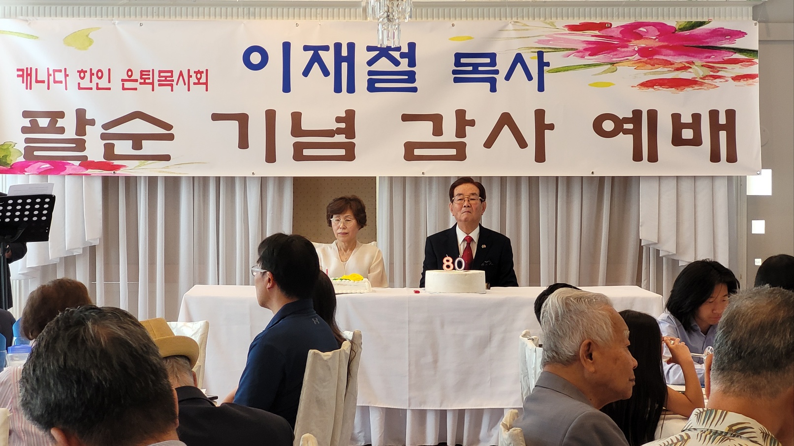 캐나다 한인 은퇴목사회(회장 김미자 목사) 이재철 부회장의 팔순 감사예배가 7월28일 낮 쏜힐 사리원 식당에서 은퇴목사회원들과 축하객, 가족 등이 모인 가운데 열렸다.
