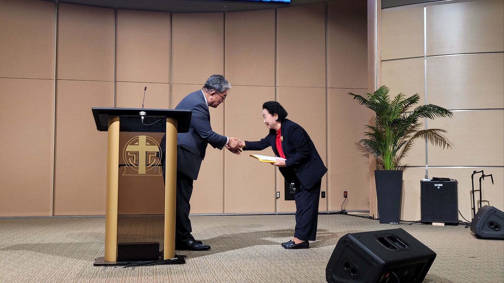 설교 후 총무 최혁 목사(새사랑교회 담임)가 서부장로교회와 본한인교회에 감사인사를 전하는 등 광고알림이 있은 뒤 위로금 전달식이 이어졌다.