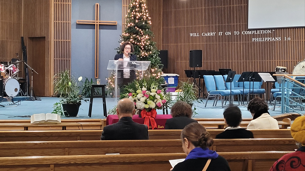 이날 오전 11시부터 15명의 회원들이 모인 가운데 드린 예배는 부회장 유태순 목사(새참빛장로교회) 사회로 하은숙 목사가 기도하고 회계 정영은 목사(세계로교회)가 성경 사도행전 18장 4~11절을 봉독한 뒤 조안나 목사-박성희 선교사 듀엣이 ‘오 거룩한 밤’‘주예수 보다 더’를 축주로 들려주었다. 이어 신임회장 박난응 선교사가 ‘붙잡힌 인생’이라는 제목으로 설교했다.