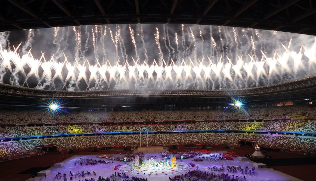 다름이 빛나는 도시= 5일 오후 일본 도쿄 신주쿠의 국립경기장(올림픽 스타디움)에서 열린 2020 도쿄 패럴림픽 폐막식에서 ‘조화로운 불협화음’ 공연이 끝나며 화려한 불꽃이 밤하늘을 수놓고 있다.