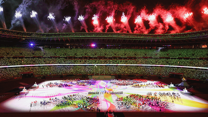 폐막공연, 조화로운 불협화음 = 5일 오후 일본 도쿄 신주쿠의 국립경기장(올림픽 스타디움)에서 열린 2020 도쿄 패럴림픽 폐막식에서 ‘조화로운 불협화음’ 공연이 펼쳐지고 있다.