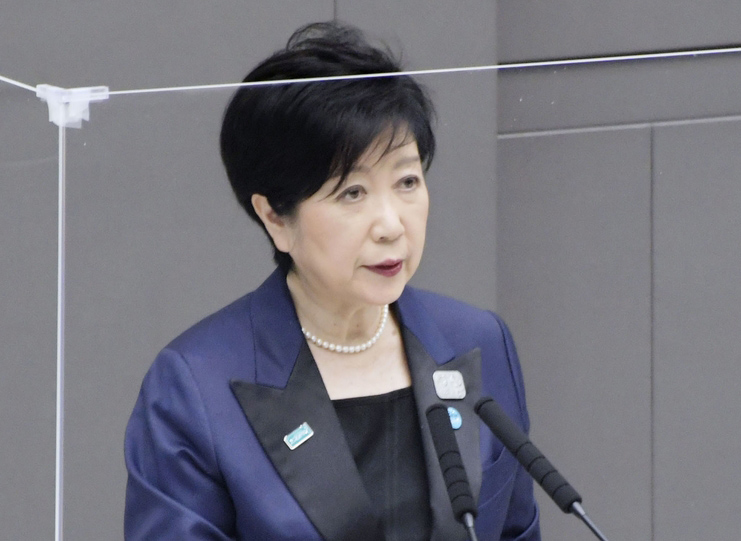 고이케 유리코(小池百合子) 일본 도쿄도(東京都) 지사가 1일 오후 도쿄도 의회 정례회에서 발언하고 있다.
