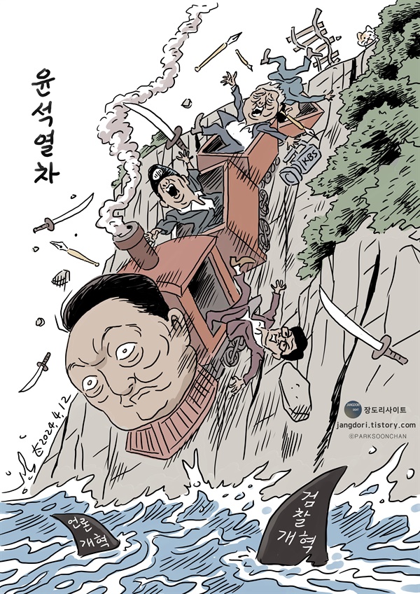 강직한 검사로 대권까지 거머쥔 윤석열도 취임연설에서는 ‘국리민복’에 성심을 다하겠다고 다짐했다. 하지만 그는 취임 직후부터 그 초심을 져버렸다. 언행과 국정 모두에서 국민을 우습게 여기는 안하무인(眼下無人)과 내로남불로 일관했다. 국민들에게는 불편과 불안과 고통을 안기면서 자기 식구들은 감싸고 덮기에 급급했고, 정책실패 경제악화로 나라 곳간은 비는데 국비를 제 주머니 돈처럼 펑펑 썼다. 오죽하면 선거 와중에 채상병 사건을 포함한 이른바 ‘이-채-양-명-주’라는 조어까지 유행이 됐을까.