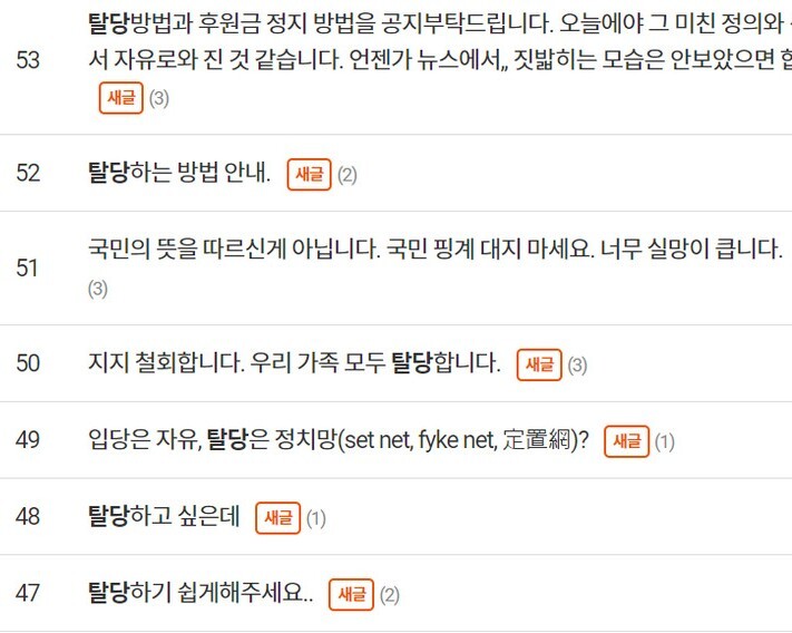 탈당 및 후원금 반환을 문의하는 글들도 이어졌다. 김도환씨는 “실망감과 화가 나서 무엇을 해야 할지 모르겠다”며 “탈당을 신청한다”고 밝혔다. 박성진씨는 “(안 전 후보의) 바라보는 세상과 신념, 생각을 지지했다. 하지만 후보가 다른 길을 선택했으니, 지지자들도 다른 선택을 해도 된다고 본다”며 탈당하겠다고 했다.