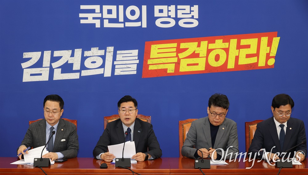 김용민 정책수석은 같은 자리에서 이재명 민주당 대표의 공직선거법 위반 1심 징역형 선고를 언급하며 "법원의 이번 선고가 있다고 윤석열, 김건희 국정농단 범죄가 사라지는 것이 아니다"라고 말했다. 김 수석은 "이재명 대표에 대한 기준으로 (김건희 여사의) 죄를 심판한다면 최소 무기징역에 처할 것"이라면서 "특검을 거부하면 국민 심판 불길이 무도한 권력을 한줌 재로 만들 수 있다"고 강조했다.