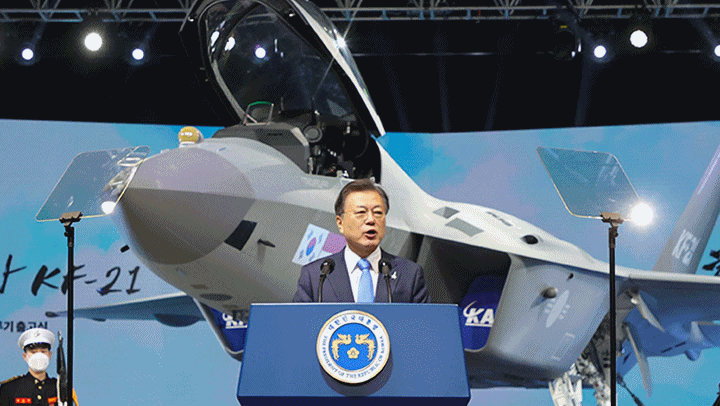 문재인 대통령이 오는 2032년까지 국내 기술진 주도로 개발한 한국형 전투기(KF-X) 120대를 실전에 배치하겠다고 밝혔다. 문 대통령은 또한 이 전투기 명칭을 ‘KF-21 보라매'라고 공식화했다.