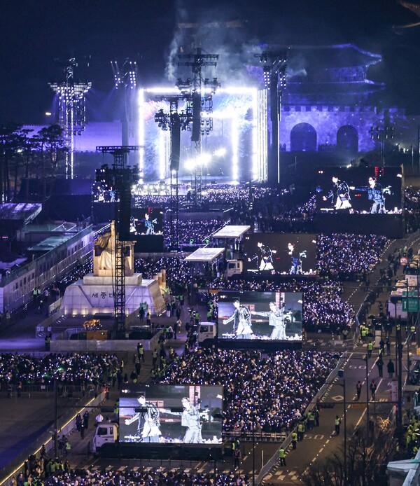 그럼에도 이날 광화문에 울려퍼진 것은 단순한 컴백의 환호만은 아니었다. 백성의 노래 ‘아리랑’과 왕의 공간 경복궁, 그리고 세계를 무대로 활동해온 방탄소년단의 현재가 한자리에서 맞물렸다. 그렇게 방탄소년단은 광화문에서 자신들의 뿌리와 현재, 그리고 다음을 함께 꺼내 놓으며 ‘방탄소년단 2.0’의 시작을 알렸다. < 이정국 김민제 기자 >
