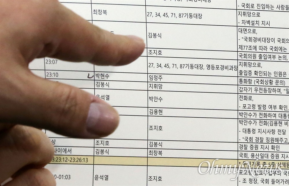 이날 국회가 있는 ‘여의도’에는 “0900경 진입”해 “수거대상”을 확보하고 “출입구 등 접수”를 하려 했던 것으로 보인다. 여의도를 언급한 대목에는 “모든 민간 출입 통제”, “여의도 매복 점령, 진입은 언제 시키고 무장 정도와 복장은?” 등이 내용이 적혔다.