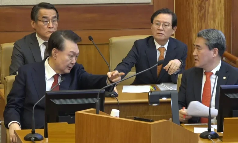반대로 윤 대통령은 자신이 신청한 박춘섭 대통령실 경제수석비서관이 증인으로 나오자 자리를 비우는 등 여유 있는 모습을 보였다. 윤 대통령 쪽은 ‘야당의 예산 삭감으로 국정이 마비됐다’는 박 수석 진술을 유도해 계엄의 타당성을 주장하려 한 것으로 보인다. < 한겨레 오연서 전광준 기자 >