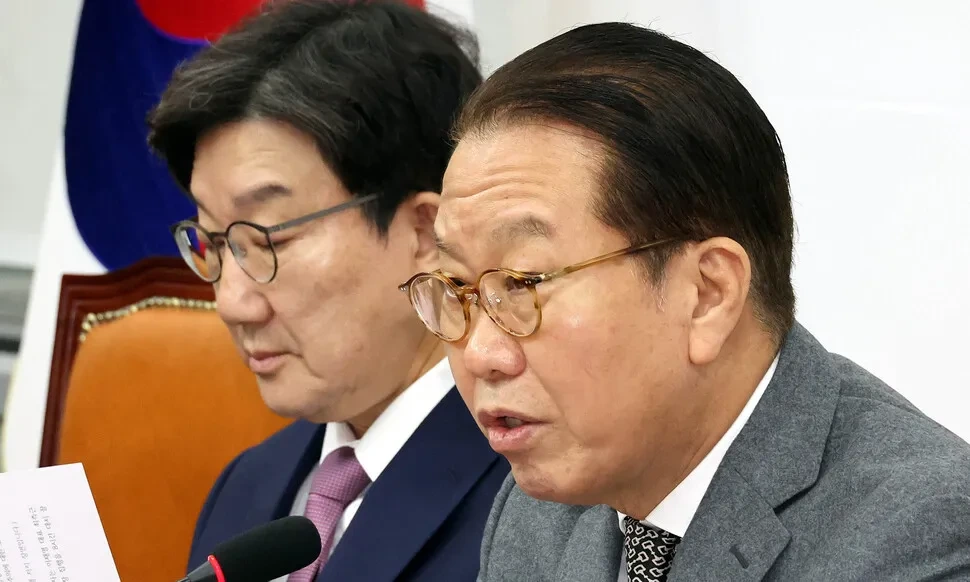 현직 대통령이 불법 비상계엄 선포로 구속되는 초유의 사태가 발생했지만, 집권 여당 투톱이 이에 대한 사과를 하기는커녕 법원 결정에 “유감”을 표명하며 ‘정적 찍어내기’에만 집중한 것이다. 김재원 전 최고위원은 이날 페이스북에 올린 글에서 윤 대통령 구속에 항의해 서울서부지법에 난입한 윤 대통령 지지자들을 “윤 대통령의 외롭고도 힘든 성전에 참전하는 아스팔트의 십자군”이라 칭하며 “그 성전의 상대방은 당연 ‘반국가세력’의 괴수 이재명”이라고 비판하기도 했다.