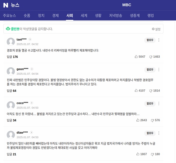 | 윤석열 내란사태 와중에 댓글공작 "혈안"... 체포, 탄핵 등 여론 반전 노려 극성 (0) | 2025.01.10 |