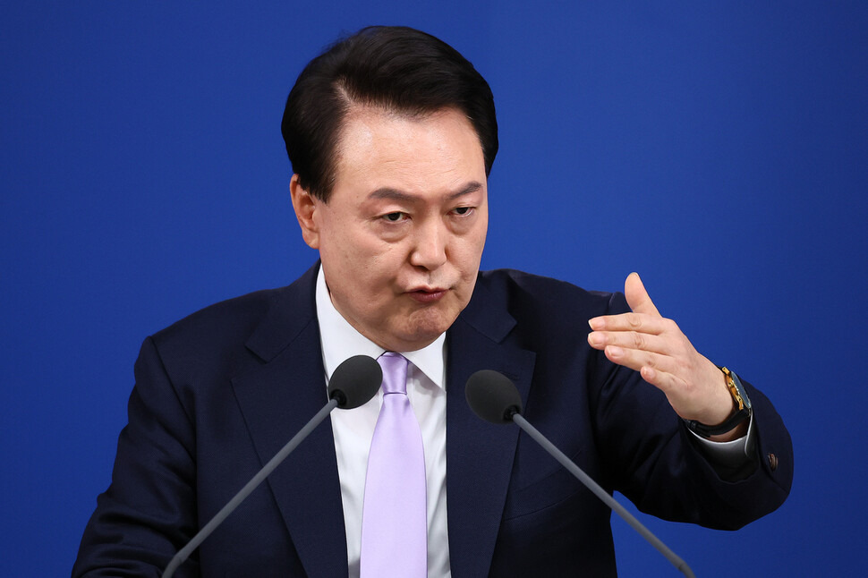 윤석열 대통령이 지난해 11월7일 서울 용산 대통령실 청사 브리핑실에서 대국민 담화와 기자회견을 하고 있다. 대통령실사진기자단