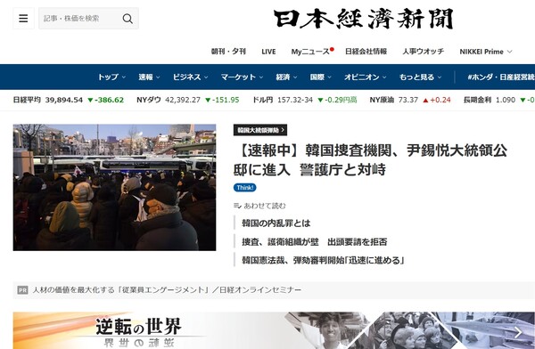 홍콩의 사우스차이나모닝포스트 계열 매체인 '디스위크 인 아시아'도 '한국 수사관들 장시간 대치 끝에 윤석열 체포에 실패했다'란 기사에서 "한국 수사관들이 한국 정치를 마비시킨 최근의 정치적 위기에 맞서면서 근 6시간 대통령 경호처와의 대치 끝에 탄핵소추된 대통령 윤석열을 구인하는 데 실패했다"고 전했다.