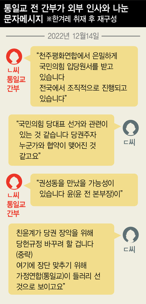 | 통일교 전 간부, 권성동에 “국가정책으로 통일교 지원하면 대선 돕겠다” (0) | 2025.08.08 |
