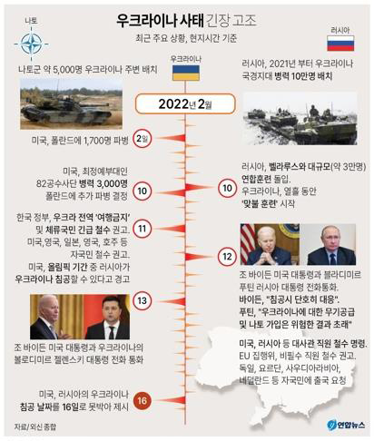 오히려 미국은 지난 12일 러시아의 침공이 임박했다는 판단하에 우크라이나에 머물던 미군 자문단 160명을 철수했다.