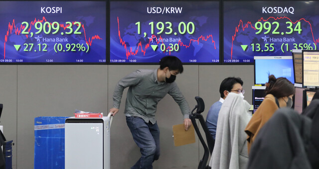 코로나19 새 변이 오미크론의 공습으로 한국 등 아시아 증시가 동반 하락했다. 정부는 변이 바이러스와 국내외 금융시장에 대한 24시간 모니터링 체제를 가동하기로 했다.