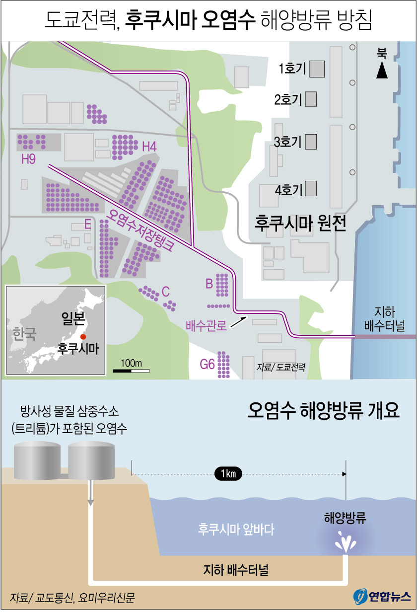 일본 정부는 후쿠시마 원전에서 나온 방사성 물질이 포함된 오염수를 다핵종(多核種)제거설비(ALPS)로 거른 후 해양 방류하기로 올해 4월 결정했으며 도쿄전력은 이에 따라 구체적인 방류 방법을 검토해 왔다.