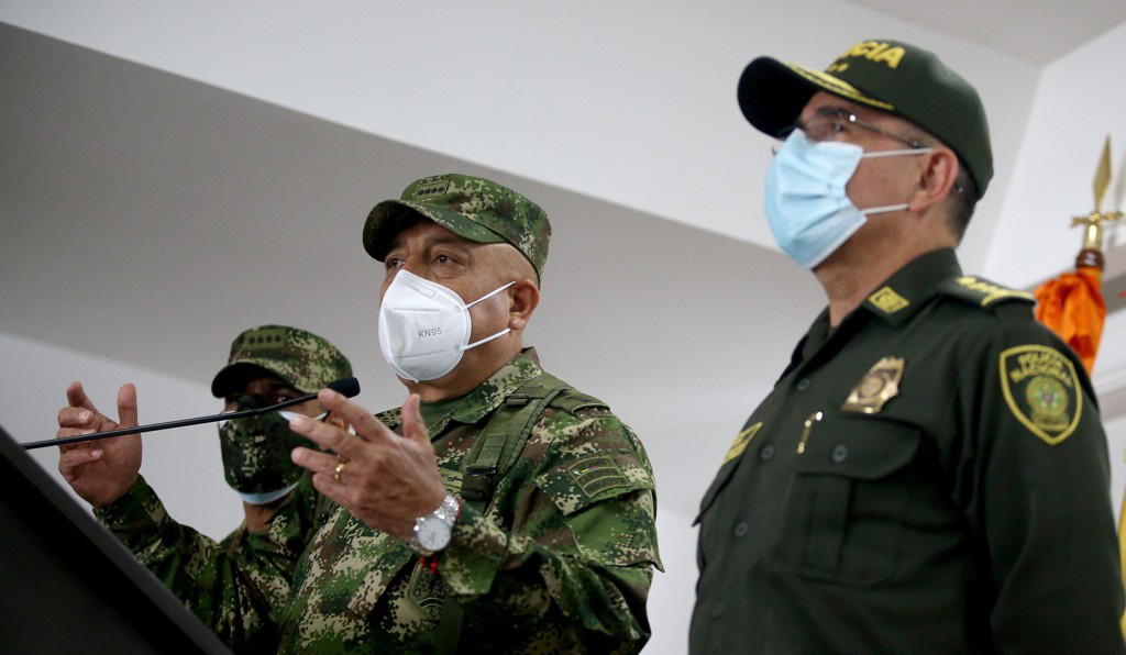 * 9일 기자회견하는 콜롬비아 군경 [로이터=연합뉴스]