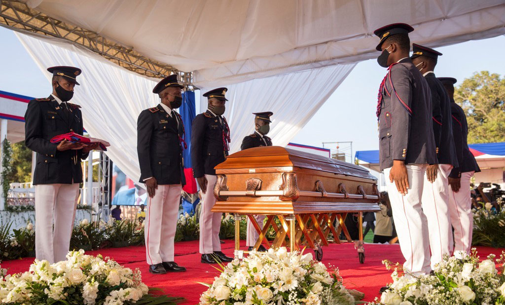일반 조문객의 입장이 제한된 이날 장례식은 모이즈 대통령 지지자들의 시위로 어수선한 가운데 치러졌다.