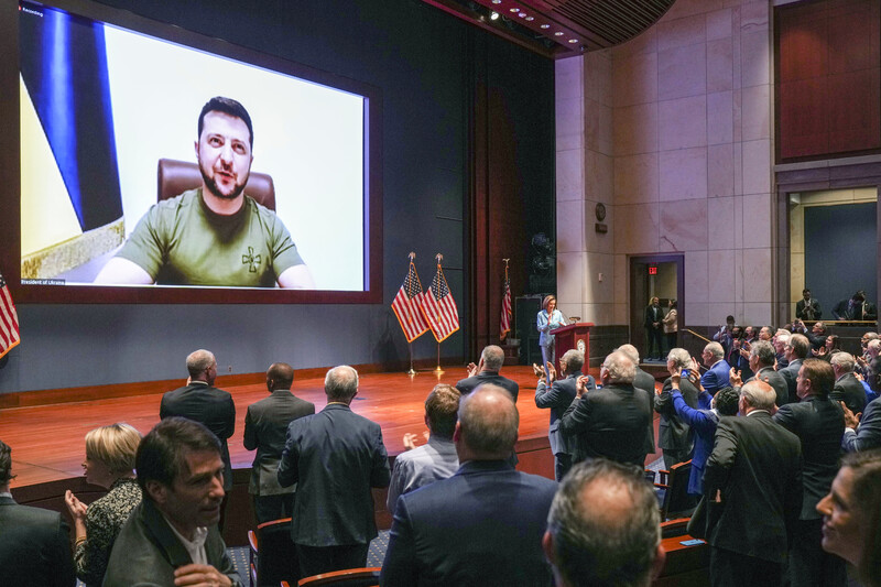 볼로디미르 젤렌스키 우크라이나 대통령이 16일 미국 의회에서 연설을 해 키이우 포기는 없을 것이라며 미국에 더많은 지원을 호소했다.
