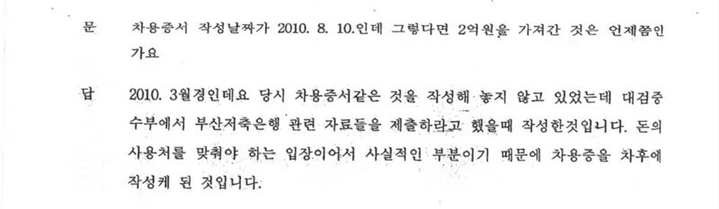 이강길 전 대장프로젝트금융투자 대표가 2014년 1월27일 경찰에 출석해 진술한 내용 일부. 2011년 대검 중수부에서 자신을 조사한 내용을 진술했다.