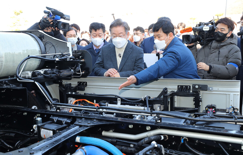 이 후보는 5일 전북 완주의 전북테크노파크스마트융합기술센터에서 열린 ‘그린수소시대를 그리다’ 국민반상회에서 “정부의 적극적인 역할로 수소경제 시대를 선도해야 한다. 기술과 전문인력 육성, 규제 자율화가 필요하고 무엇보다 대대적 재정을 지출하는 큰 정부가 필요하다”고 말했다. 행사에 참석한 남지흔 두산퓨엘셀(수소를 활용한 발전용 연료 전지 개발기업) 과장이 ‘정부가 수소산업을 계속 밀고 가는 것이 맞나 불안하다. 현재 임신 중인데 출산과 육아휴직 뒤에도 회사가 계속 가는 것인가 걱정스럽다’고 하자 “이재명 정부가 되면 그런 불안감은 싹 사라질 수 있다”고 자신감을 보이기도 했다.