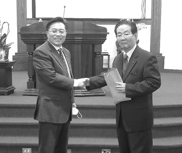예배에 이어 서부장로교회가 전해 온 위로금을 양요셉 목사가 은퇴목사회 이재철 회장에게 전달해 회원들에게 전해지도록 했다. 서부장로교회는 해마다 은퇴목사들을 위한 특별 위로금을 전달해 오고 있다.