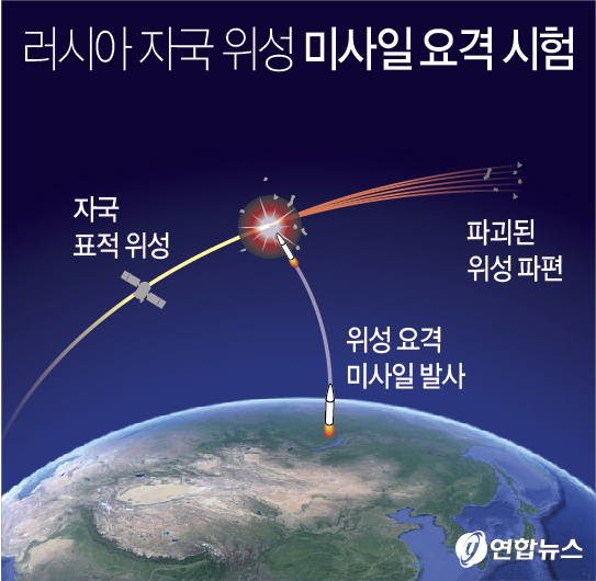 러시아는 이날 우주에 있는 자국 위성을 미사일로 파괴하는 요격 미사일 시험 발사를 한 것으로 확인됐다.