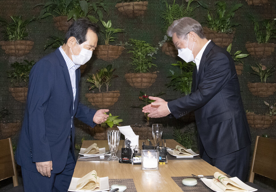 문 대통령은 우선 인사말에서 지난 민주당 경선을 거론하며 "경쟁을 치르고 나면 그 경쟁 때문에 생긴 상처를 서로 아우르고 다시 하나가 되는 게 중요하다"며 "그런 면에서 일요일에 이낙연 전 대표님을 (만난 것이) 아주 좋았다"고 평가했다.