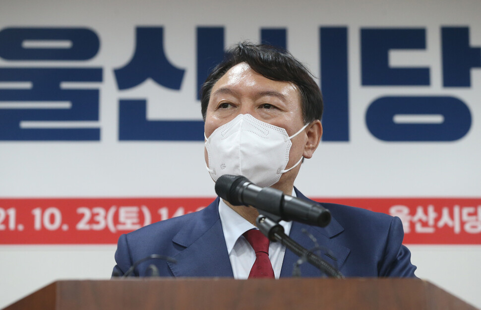 국민의힘 윤석열 대선 경선 후보가 23일 오후 울산시당 이전 개소식에 참석해 발언하고 있다. 연합뉴스