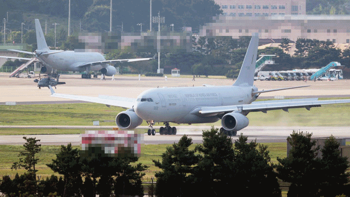 20일 오후 서울공항에서 신종 코로나바이러스 감염증(코로나19) 집단감염으로 귀국한 청해부대 34진 문무대왕함(4천400t급)의 장병들이 공군 다목적 공중급유수송기(KC-330)에서 내리고 있다. 연합뉴스