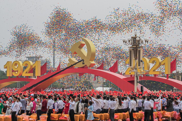 그는 “100년 전 창당 당시 당원이 불과 50여명에 그쳤던 중국 공산당은 이제 9500여만명의 당원을 보유하고 있으며, 14억명이 넘는 인구 대국을 이끌고 있는 세계 최대 집권당이 됐다”며 “100년 전 쇠락한 모습으로 세계 앞에 섰던 중화민족은 이제 번영을 향해 거침없는 발걸음을 내딛으며 위대한 부흥을 향해 나아가고 있다”고 주장했다.