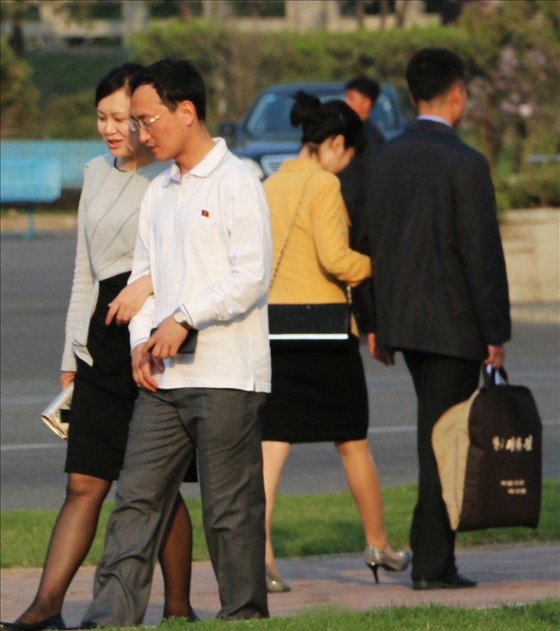 *다정한 평양의 연인: 사진은 2015년 평양 시내에서 다정하게 걷고 있는 젊은 연인의 모습. [연합뉴스]