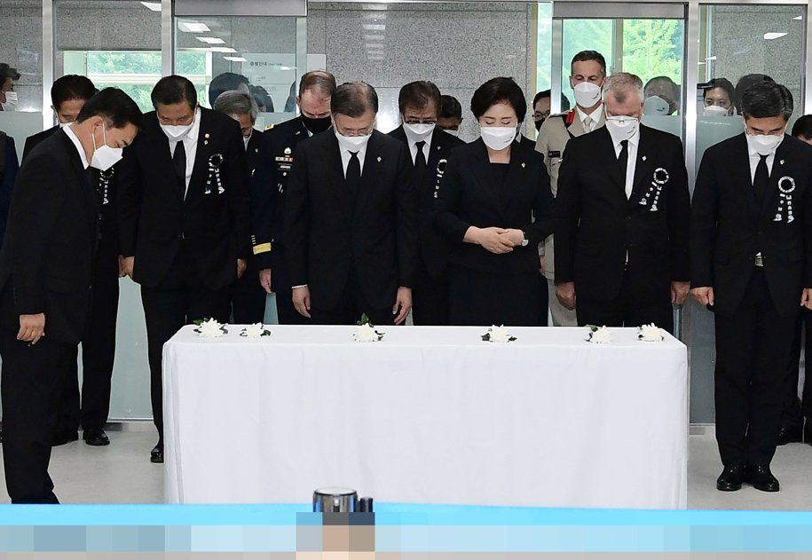 문재인 대통령은 6일 오전 경기 성남시 국군수도병원에 마련된 공군 성추행 피해 이모 부사관의 추모소를 찾아 고인을 추모하고 유가족을 위로했다.