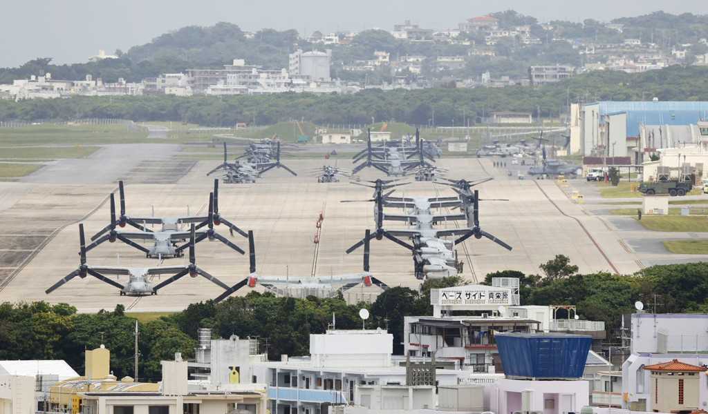 일본 오키나와(沖繩)현 소재 미군 후텐마(普天間) 비행장. 일본 정부는 이 비행장을 대체할 군사 시설을 건설하겠다며 오키나와 헤노코(邊野古) 연안을 매립하는 공사를 하고 있다. [교도=연합뉴스]