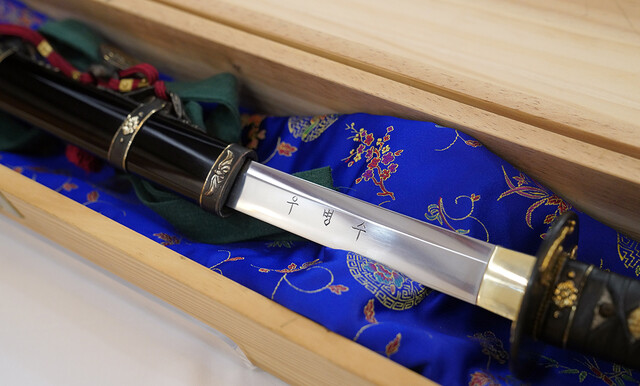 * 문재인 대통령이 이임하는 에이브람스 한미연합사령관에게 선물로 준 ‘호신문장환도’. 한국 이름인 ’우병수’가 새겨져 있다.