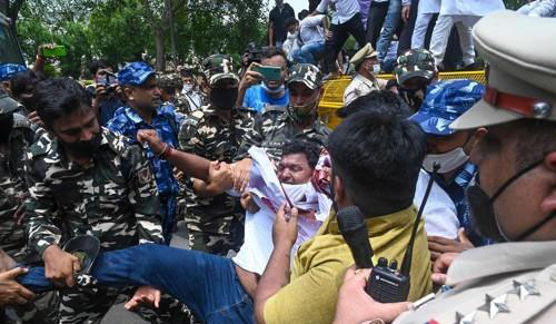 *인도에서 페가수스 통한 감시에 반대하다 제지 당하는 모습 [AFP=연합뉴스]